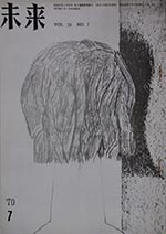 岡井隆 – 百歌奏鳴(1) / 未来賞受賞第一作 森直子 – のぞみありて ・ 米田律子 – 浮実考 / 米田律子他 - 作品 (一) ・ 船橋洋他 - 作品 (二) / 我妻泰 - イデオロギーと短歌 ・ 吉田漱 - ひきさかれた状況と存在 / 阿木良直子 – ほむら ・ 佐々木昭元 - 旅にて ・ 藤本オリコ – 海に君呼ぶ ・ 田牧久穂 – 鰰 / 佐々木昭元 - 時評’70 ・ 岡井隆 - 東西南北 ・ 小山そのえ他 – 工房月旦 (49) / 後記 - 隆・泰 / 選歌と作品欄担当 - 近藤芳美 ・ 編集責任者 - 岡井隆 ・ 編集スタッフ - 我妻泰 ・ 表紙構成とカット - 大島史洋・星河安友子・吉田漱 ・ 表紙 -マックス・エルンスト作「博物誌」より / 編集発行人 - 近藤芳美 / 発行所 – 未来短歌会 / 印刷所 – 一誠社綜合印刷株式会社 / 定価300円 |